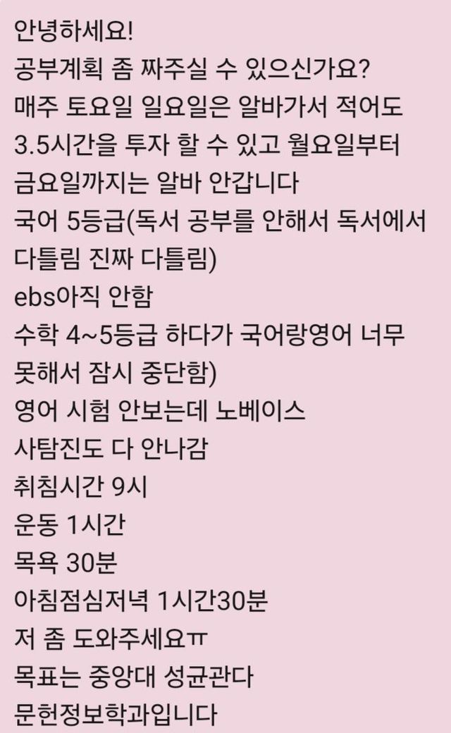 수능공부계획표(계획세워주세요ㅠ)
