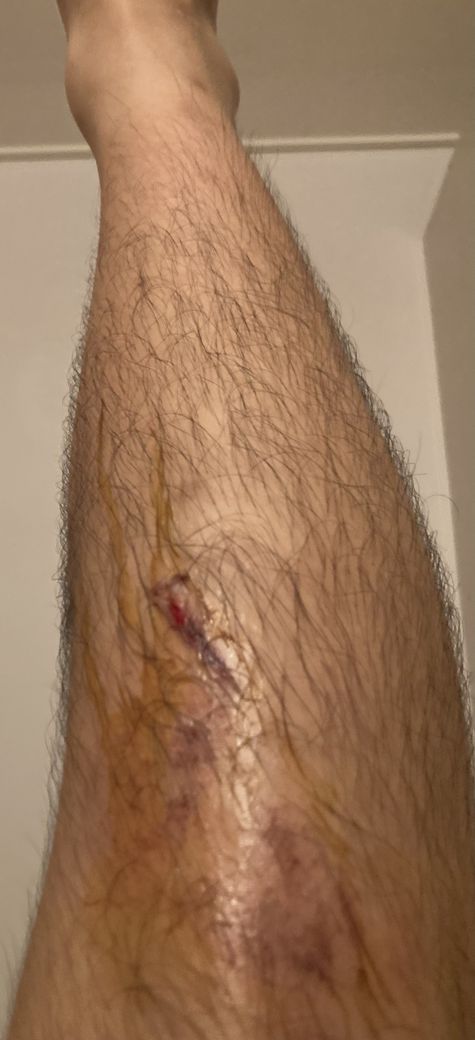 질문하신 내용에 대하여 아래와 같이 답변 드립니다.사진 포커스가 제대로 잡히지 않아 깔끔하게 보이지는 않지만, 상처 부위가 다소 깊고 벌어져 있어 봉합이 필요하실 것으로 보입니다. 정형외과에 방문하시어 적절한 봉합술 및 약물 처방을 받고 봉합사를 제거할 때까지 드레싱을 하며 상처 관리를 할 필요가 있어 보입니다.