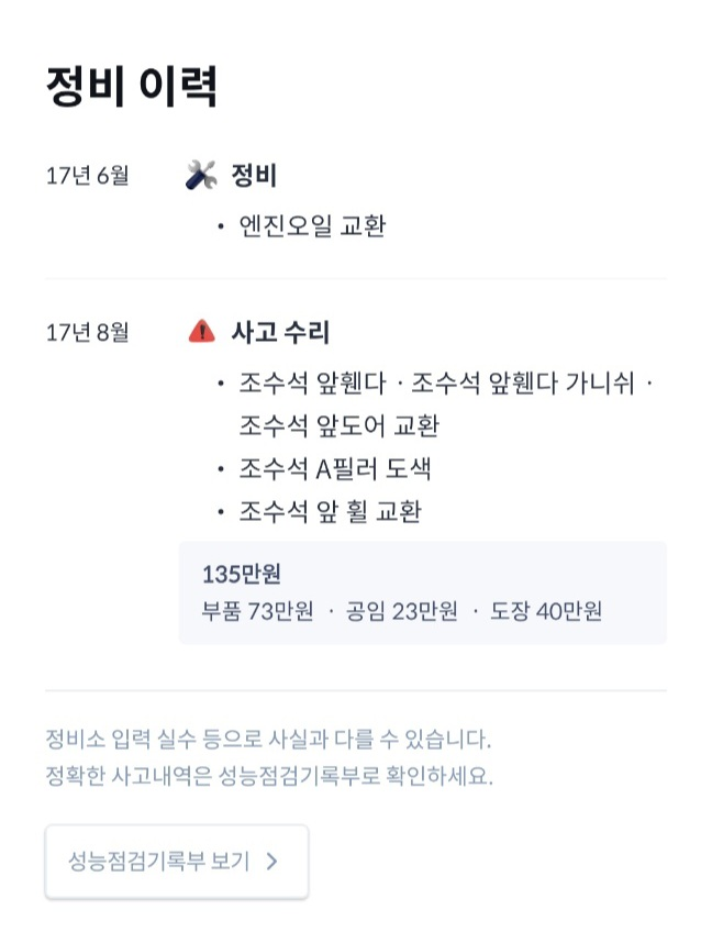 저 정도 교환 이력이면 운전하기에 치명적이거나 크게 주의해야 할 부분이 있는지 해서 질문 올려 봅니다.