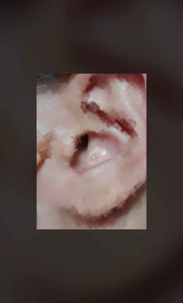 질문하신 내용에 대하여 아래와 같이 답변 드립니다. 사진으로만 보아서는 상태를 정확히 알기가 어렵습니다. 우선은 귀 속에도 병변이있는지 이비인후과 진료를 먼저 보시고 만약 귀속에 문제가 없다면 피부과 진료를 보시는것이 좋을것 같습니다.안녕하세요? 아하(Aha) 의료 분야 지식답변자 조인영 의사입니다.