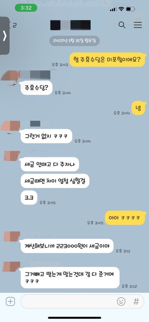 제가 알바를 하고 있는데 따로 근로계약서는 작성하지 않았고 세금 안때고 주는거면 저 금액이 맞다고 하는데 맞는건가요? 168만원 으로 월급을 받았습니다 주휴수당 금액 빼구요