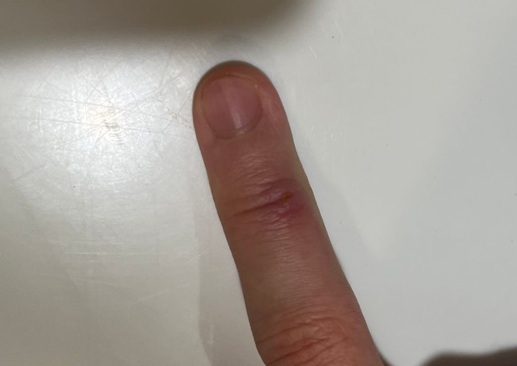 친구한테 손톱으로 찍혀서 살짝 살이 파인 상처가 났는데 가만히 둬도 될까요? 3일정도 지났는데 약간 그 부위가 빨갛게(약간 거무스름) 부었고 누르면 아파요.