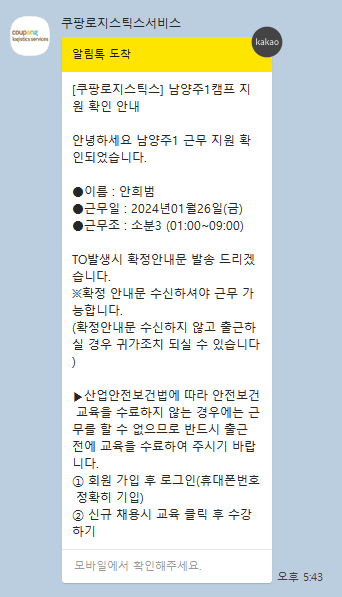 일단은 지원 확인이 되었다고 해서요 이게 근무 확정인건지 아니면 문자가 한번 더 오는지 모르겠어요