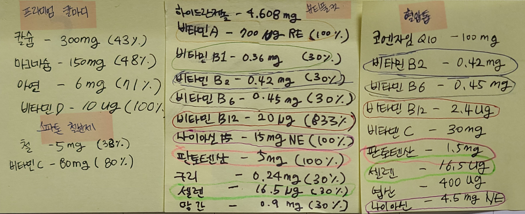 철분제는 공복에 따로 복용, 칼마디는 저녁 식후에 복용, 혈압톱은 아침 식후에 복용하는 것을 추천드립니다.