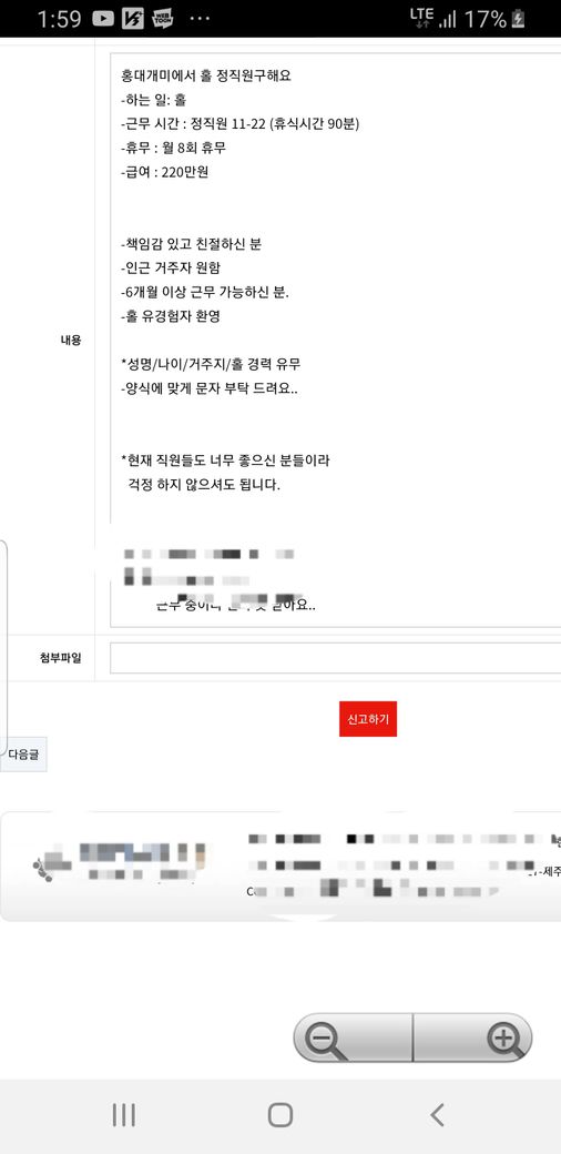 식당에서 홀정직원으로 근무를 하고 있는데요.