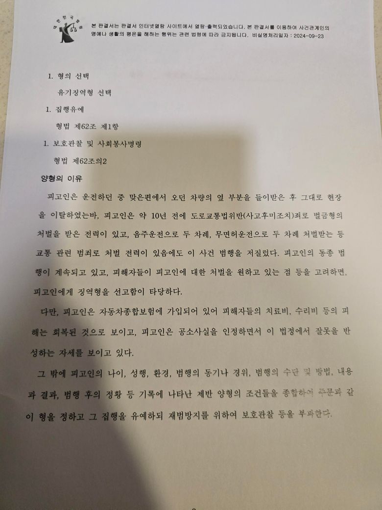 그냥 도주 치상 혐의만 있는데 1심에서 피해자와 합의 안 했고 10년 전 사고 후 미조치로 벌금형 받은 적 있고 음주운전 2번 무면허 운전 2번 있지만