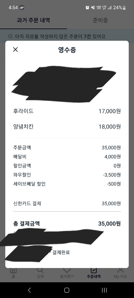 근데 전 와우 할인가로 15300원으로 샀긴했는데 사장님은 17000원 주신다고 하시는데 이게 배달앱으로 시킨거라 배달 수수료 및 계산이 애매해서 그런데 위에 영수증 찍힌대로 환불받는게 법률적으로 문제가 없겠죠?