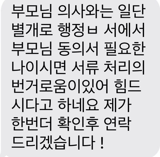 문자 내용만 보아서는 필요한 서류등을 지참하는것으로 만17세가 되는 내년부터는 다시 이력서를 넣어 근무가 가능할것으로 보입니다.