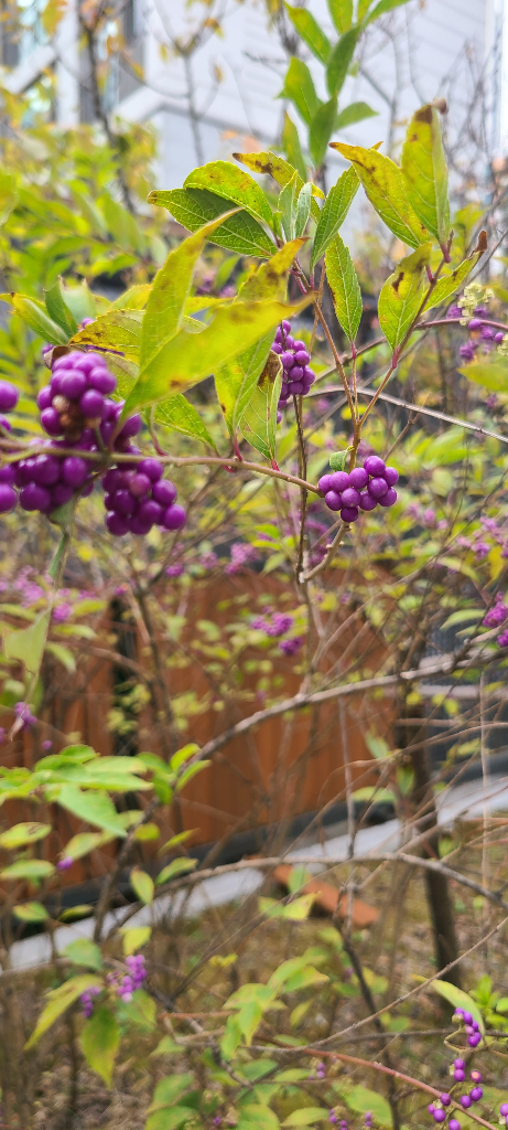 참고로, 사진 속 보라색의 물체는 꽃이 아니라 열매입니다.