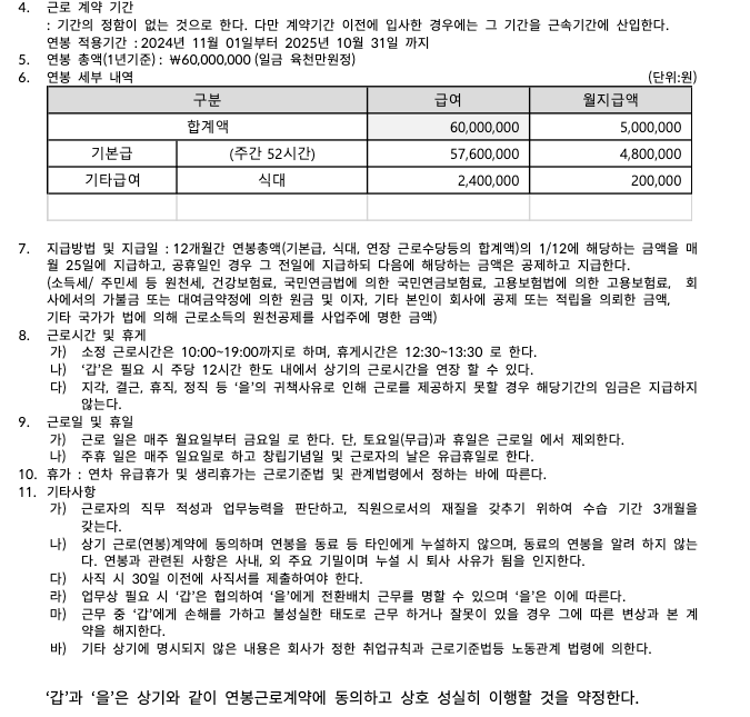 실제로 근무는 평일 8시간 주5일 (40시간) 일합니다.