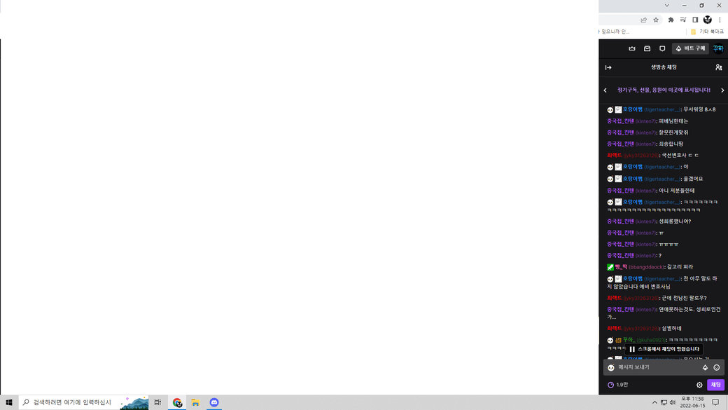 중국집이라는 닉네임이 상대방입니다.
