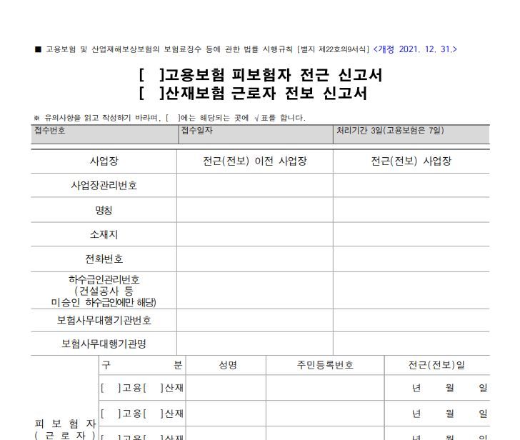 (근로자전보_피보험자전근 신고서) 이 서식이 맞을까요?