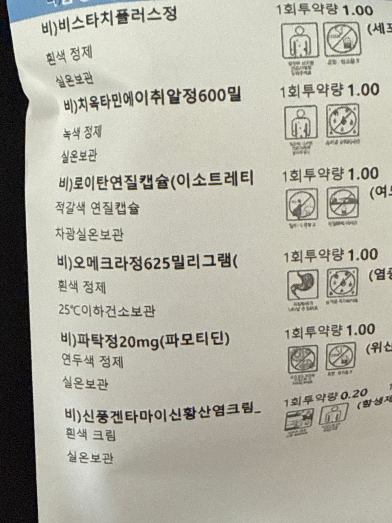 제가 비스타치플러스정, 치옥타민에이취알정, 로이탄연질캡슐, 오메크라정, 파탁정 을 먹고있는데 헌혈이 불가한 약물들이 맞을까요?