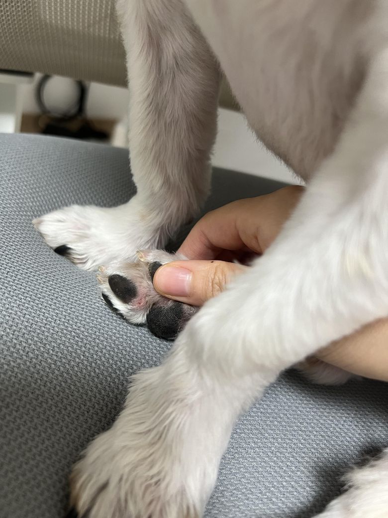 강아지 발바닥 상태입니다. 병원 가볼까요?