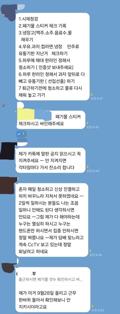 사장이 수시로 cctv를 켜서 업무를 지시합니다.