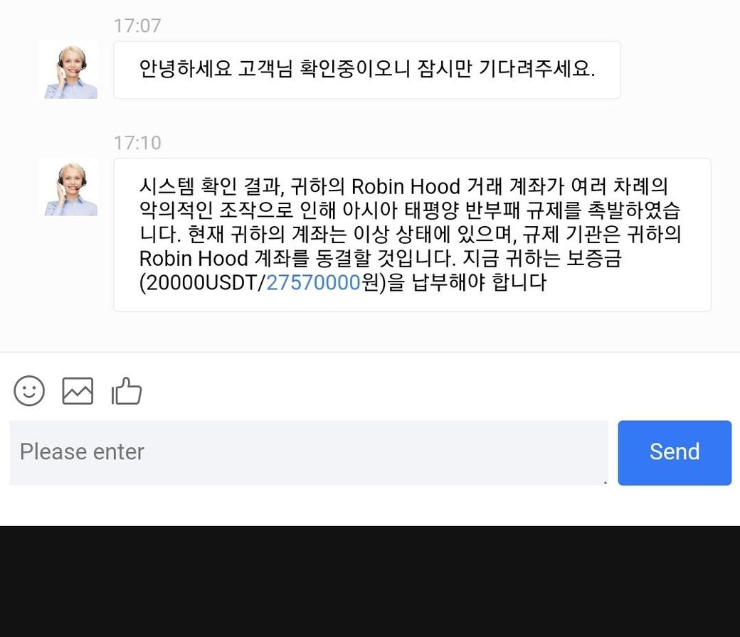 해외 거래소에서 여러번 매매 후 출금 문의 하였는데 악의적인 조작으로 보증금을 납부 해야 된다고 출금을 안해주고 있는데 맞는건가요?