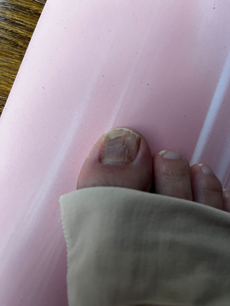 발톱 무좀 가능성이 있어 보입니다.