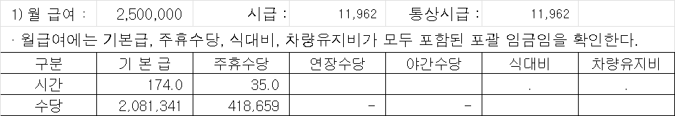 1. 월 급여 : 2,500,000 / 주6일 하루8시간 시급?