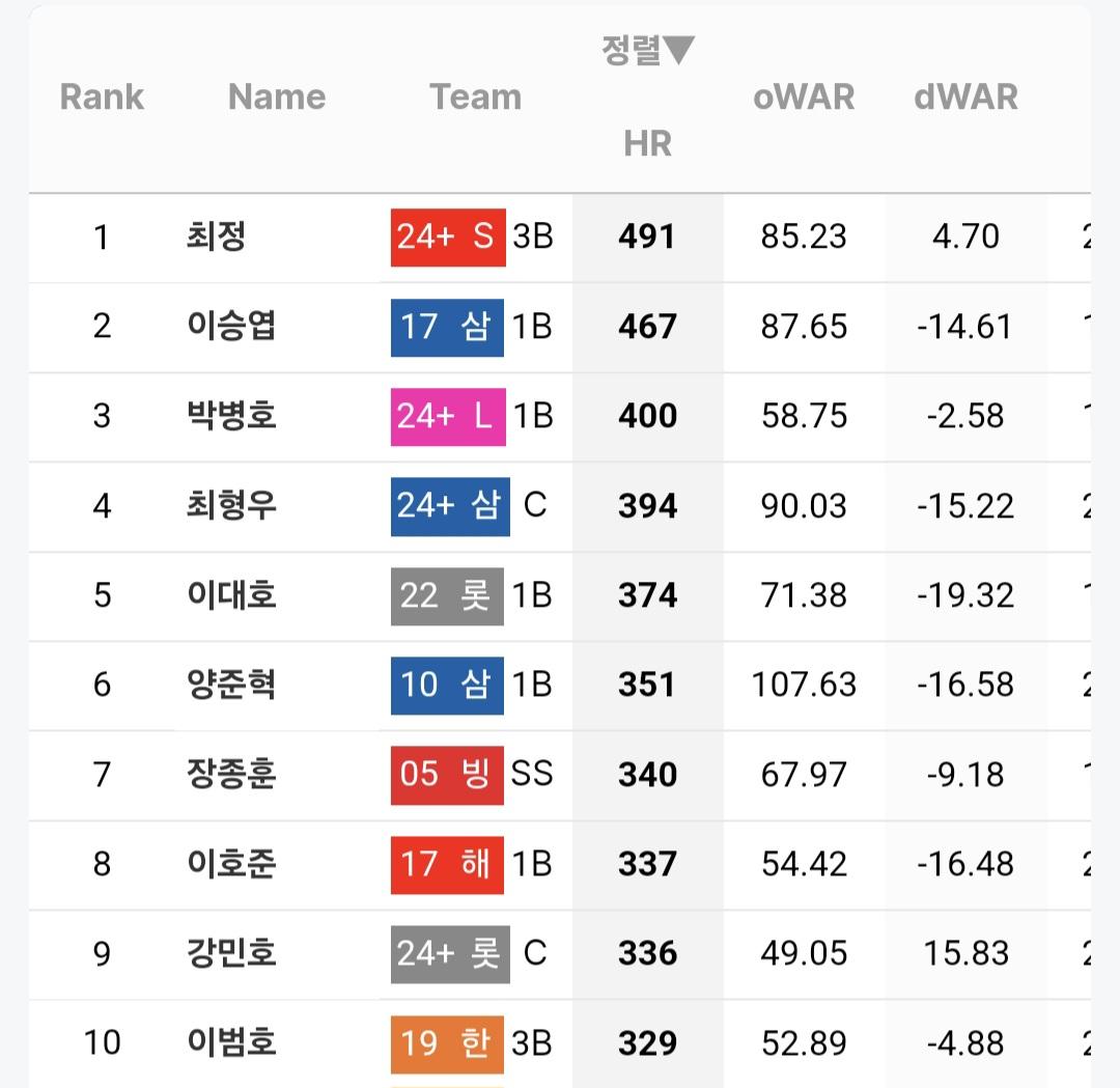 최형우가 현재 394개로 4번째 400홈런을 앞두고 있구요.