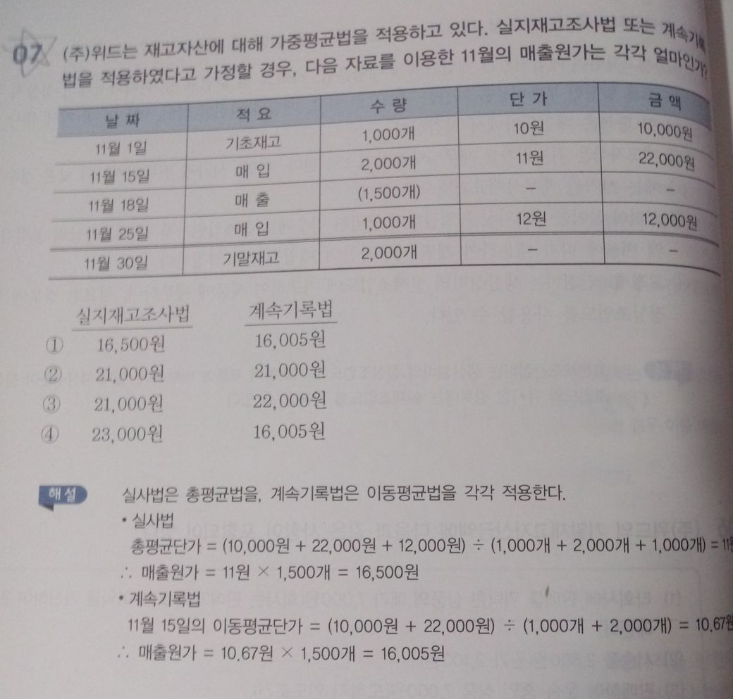 실지재고조사법(실사법)+가중평균법 매출원가 문제 풀이 설명 부탁드립니다ㅠㅠ