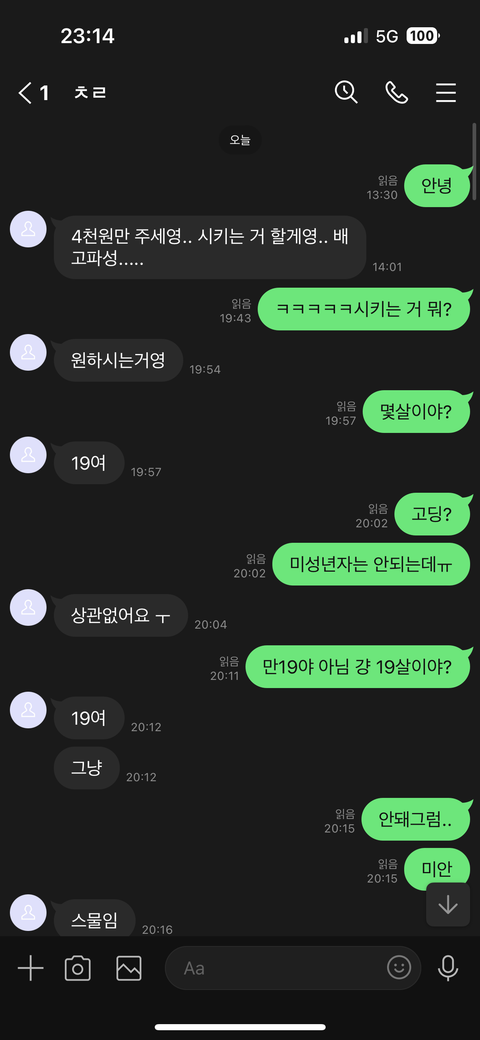 저는 안녕? 이라고만 했는데 상대방이 갑자기 4000원만 주면 뭐든지 다 하겠다 해서
