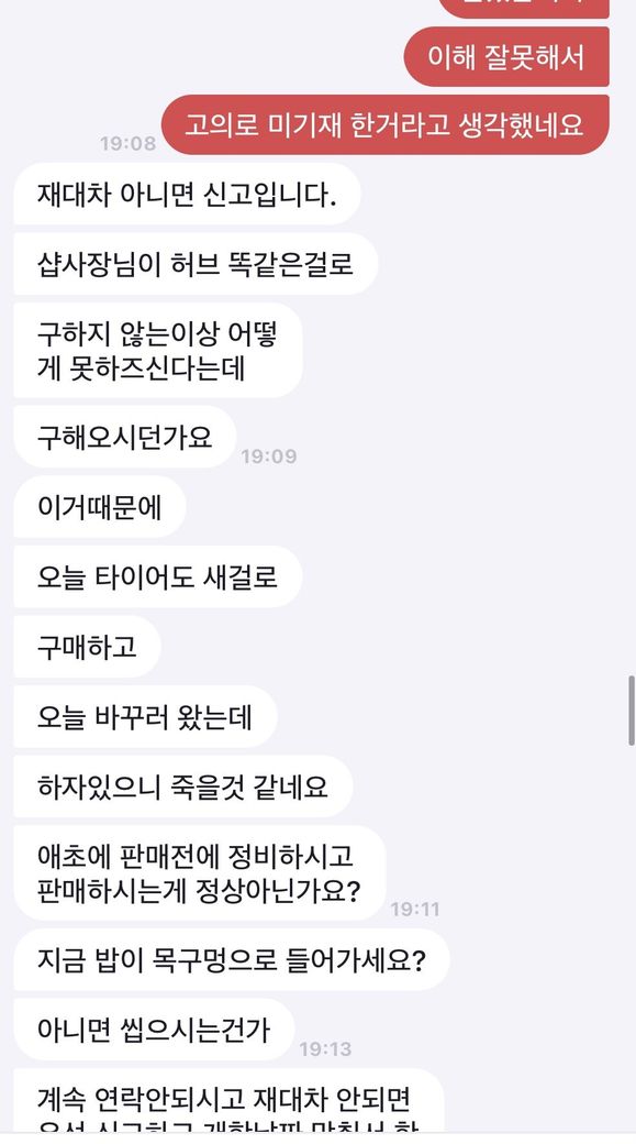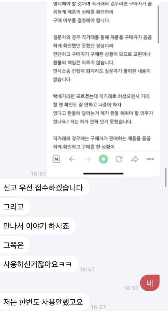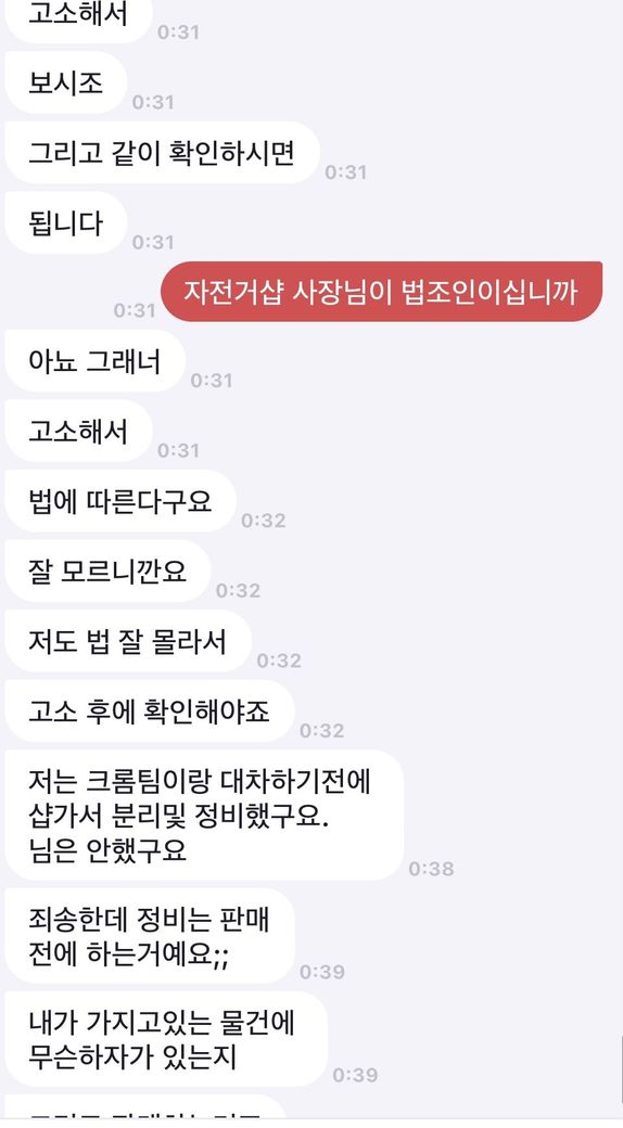 제가 한 2주쯤 제 자전거 휠셋과 거래자분의 자전거 프레임셋을 직거래로 교환했습니다. 그런데 오늘 갑자기 연락이 와서 제 휠에 기재받지못한 하자가 있다고 그러시는데 저도 중고로 사왔는데 저도 그런 하자는 기재받지 못했고 제가 탈때는 아무 이상 없었고 저는 그쪽을 전혀 손대지 않아 전혀 모르고 있었습니다. 그런데 이걸 제가 보상또는 환불해드릴 의무가 있나요? 직거래할당시 확인을 재대로 안하신 거래자분 잘못 아닌가요? 심지어 옆에 자전거샵도 있었습니다. 저는 거래당시엔 그런 하자를 전혀 모르고있어서 상태에 자신이 있었기때문에 그분이 자전거샵에서 정비를 해보자하셨으면 정말 정비비도 내고 정비 했을겁니다. 이제와서 보상환불 해달라고 안해주면 사기죄로 고소한다는데 이게 성립이되나요? 만약 성립된다면 어떤 절차를 밟는지 대략적으로 알고싶습니다. 밑에 사진은 대화내용입니다. 밑에서부터 읽으시면 됩니다