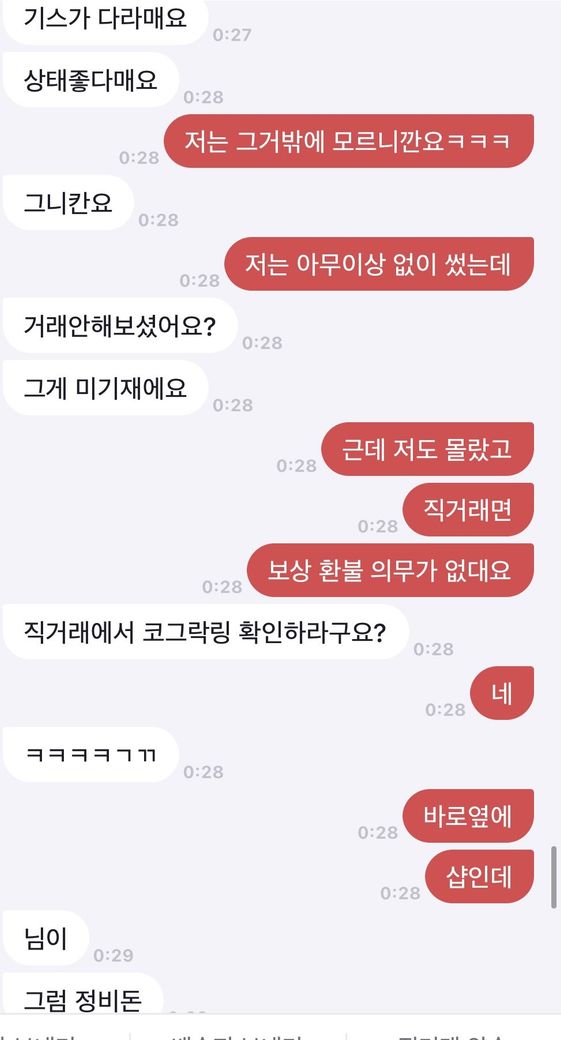 중고물건 교환 직거래후 기재받지못한 하자에 대한 보상또는 환불의 의무