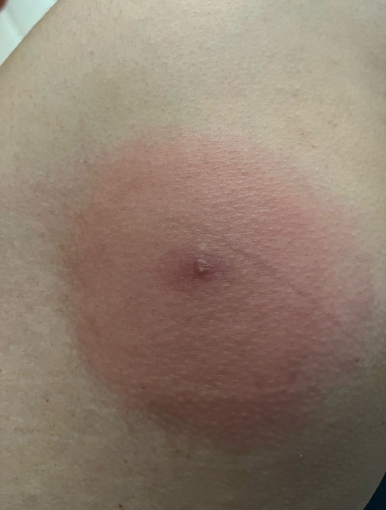 여드름인지 뾰루지인지 허벅지 뒷쪽에 나려고 간지러움이 시작됐습니다. 가운데에 고름이 찰 것 처럼 홍반이 생겼는데 하루 이틀 새에 홍반 면적이 너무 커졌습니다,, 해당 부분에 열감도 크게 느껴지는데 가만히 냅둬도 되는걸까요? 항생제 연고나 약을 처방받아야 할까요? 그리고 비슷한 시기에 기침, 콧물 없는 열이 계속 났다가 가라앉았다가 하고 있는데 홍반이 커지는 현상과 관련이 있을까요?