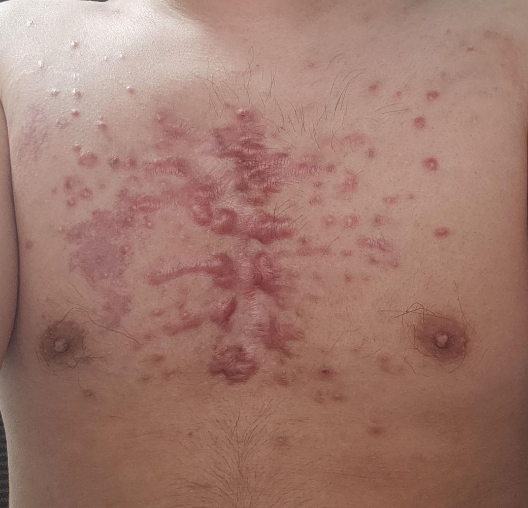 사진에서 보시는 것처럼 제가 가슴에 켈로이드 있고 등 어깨 팔 등에도 몇개가 있는데요
