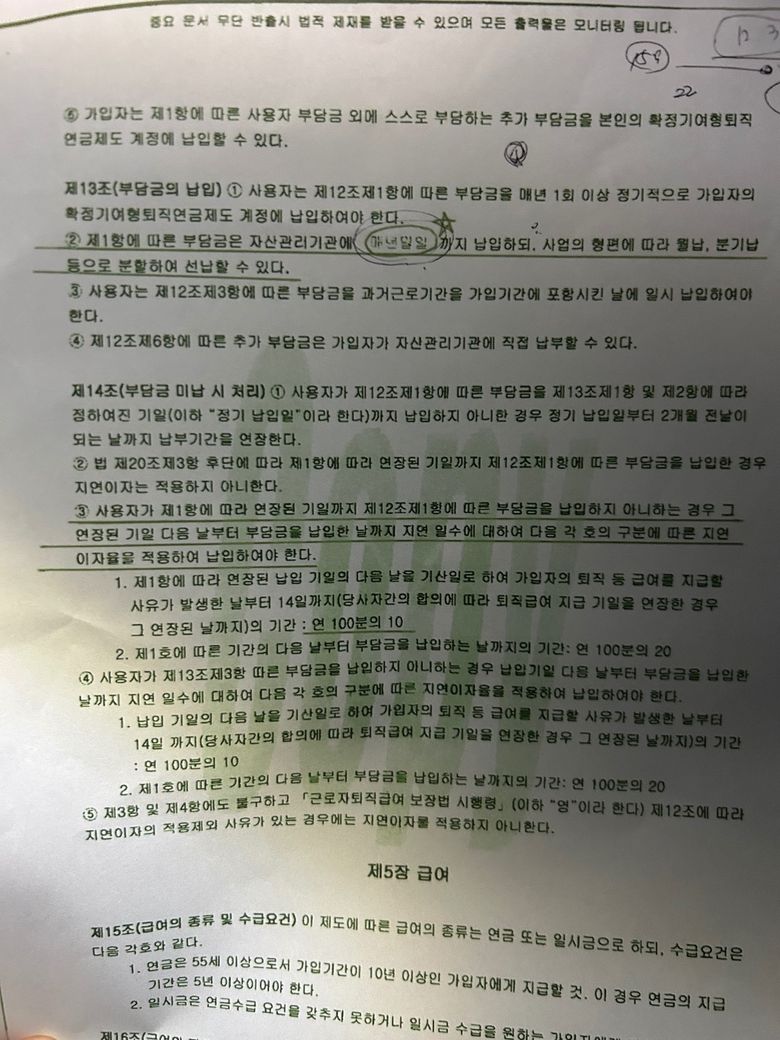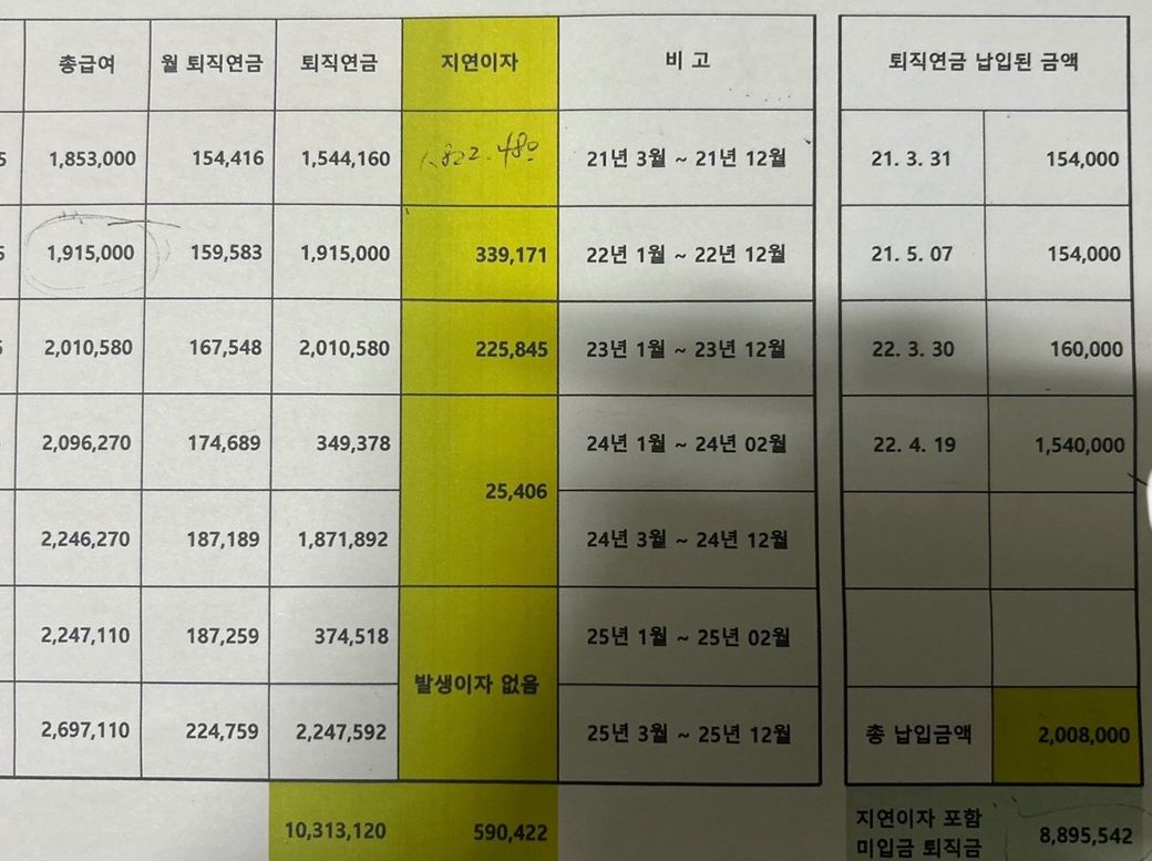 어린이집 근무중이며 퇴직연금 연체이자 문의