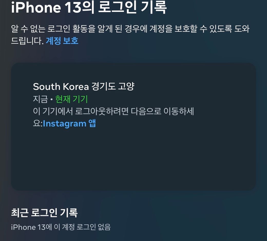 인스타 로그인 하셨었던 위치가 다른곳으로 나올 수 있는지 문의주셨는데요,