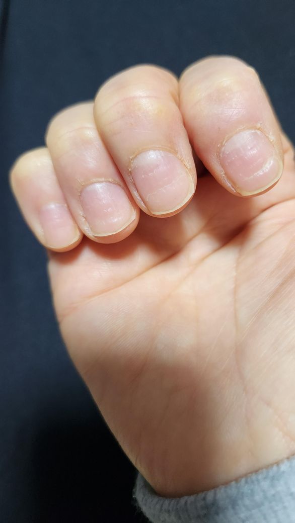 양손 손톱에 가로줄이 생기고 파였어요