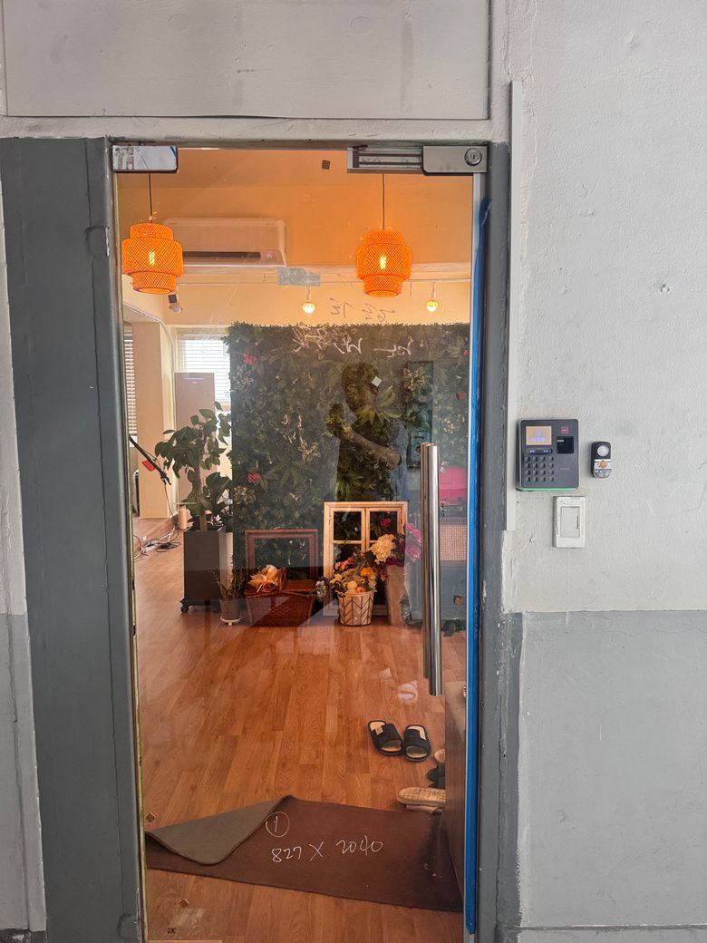 계단 올라오면 2층에 바로 상가 문이 있는 매장입니다. 3층은 거주지이며, 2층 전체가 저희 매장입니다.