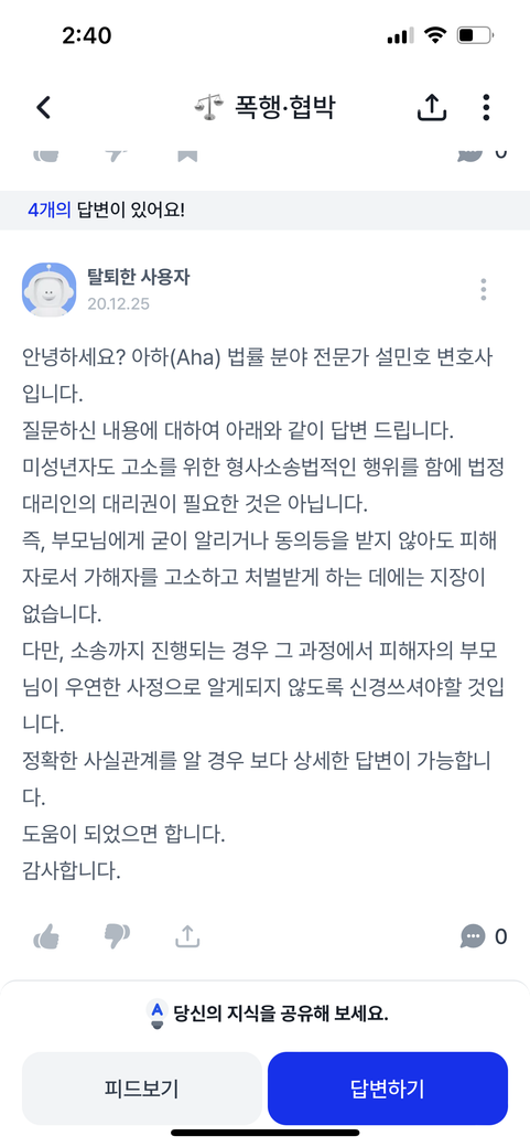 미성년자도 단독으로 형사 고소를 할 수 있습니다. 다만 수사 기관에서 원활한 수사를 위해 부모의 동석을 요구할 수 있습니다. 이상입니다