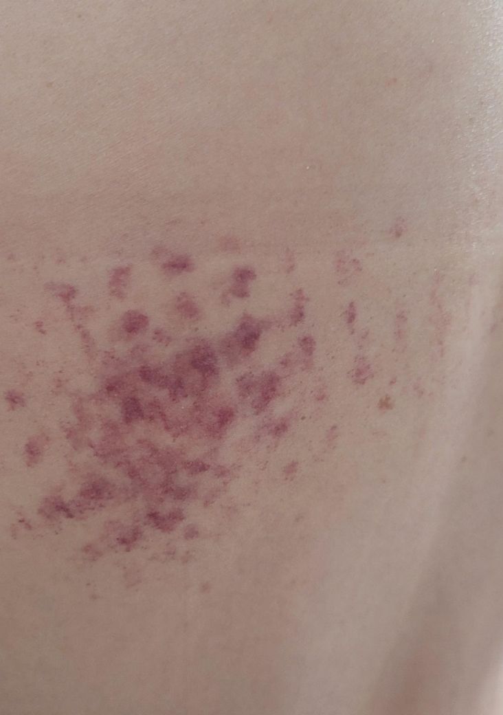 병태생리는 피부의 작은 혈관이 물리적 스트레스(압박, 마찰)에 의해 손상되면서 혈액이 피부 아래로 새어 나오는 것입니다. 이 경우 특징적으로 눌러도 색이 사라지지 않고, 초기에는 붉거나 자주색 → 며칠 지나면서 갈색으로 변하며 서서히 흡수됩니다.