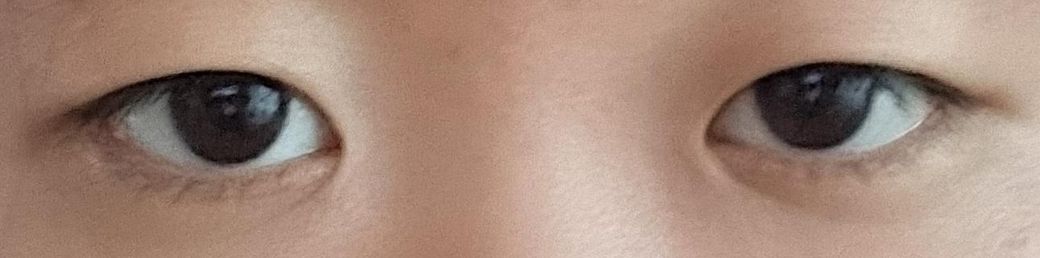 특히 피로, 조명, 촬영 각도(정수리 쪽에서 찍은 사진) 때문에 한쪽 눈이 치우쳐 보이는 경우가 흔합니다.