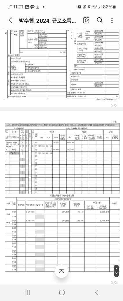 첫번째 사진의 가장 하단에 차감징수세액이 마이너스라면 환급을 받는 것입니다.