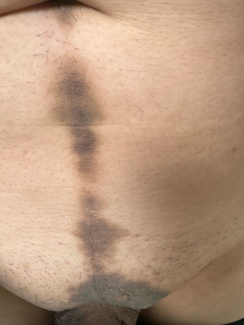 성기 위쪽에 두드러기처럼 검게 뭐가 생겼는데 그위로 또 얇게 선처럼 배꼽까지 검게 줄이 생겼습니다 이게 뭔지 알 수 있을까요 이런경우는 어디 병원을 가야하나요