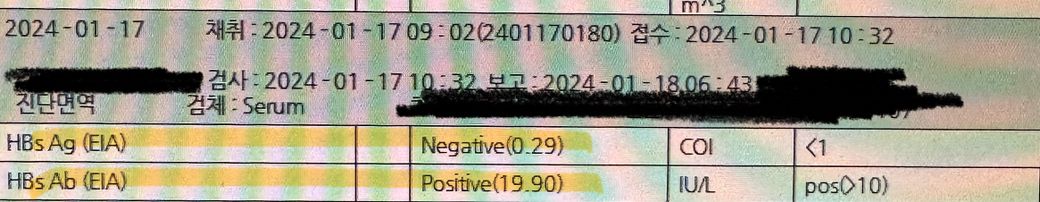 저는 일단 b형간염 항체가 있습니다