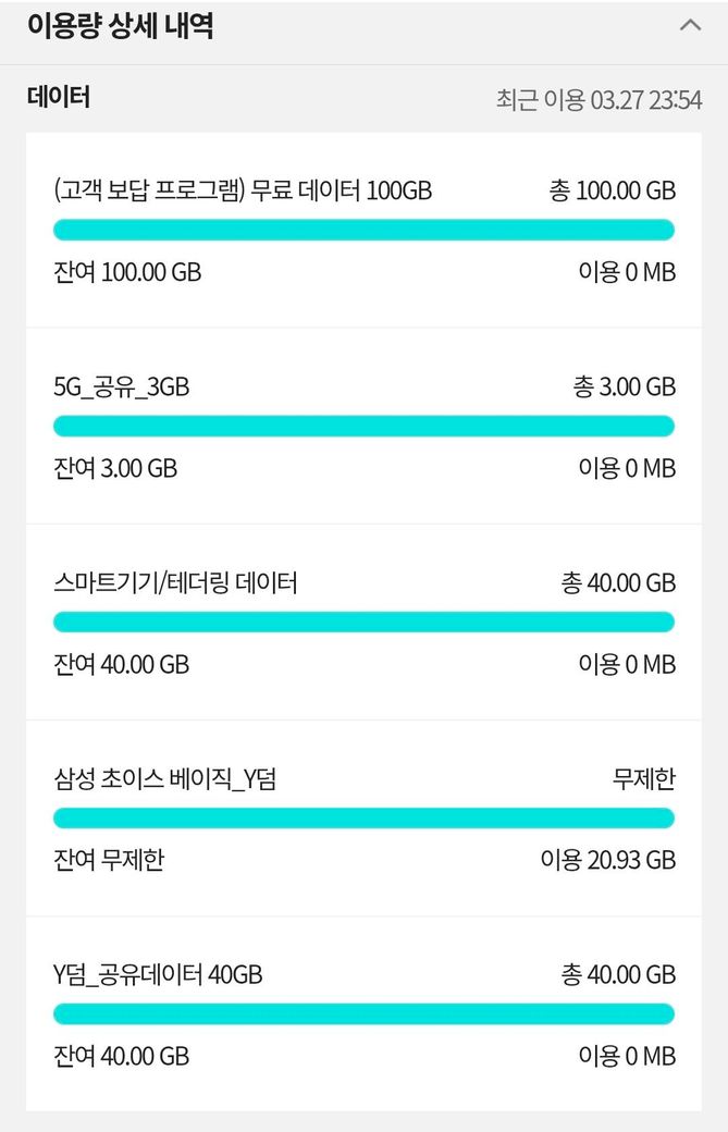 매월 1일에 리셋되는데 아직 4일이나 남았으므로 4일 동안 120GB 가까이 남았으니 상당히 많이 남았습니다.