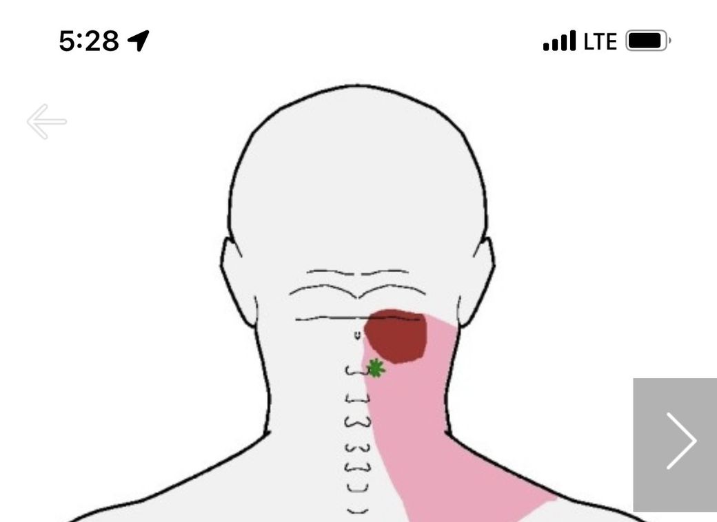 상기 증상은 승모근의 문제로 인해 발생한 통증으로 보입니다.