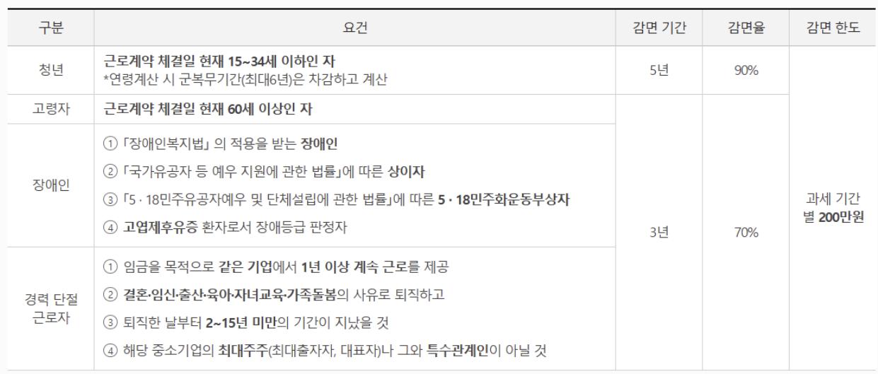 중소기업 취업자 소득세 감면대상은 아래와 같기에 병원에서의 장애인증명서만 있는 경우라면 감면대상이 아닐 것으로 보입니다.