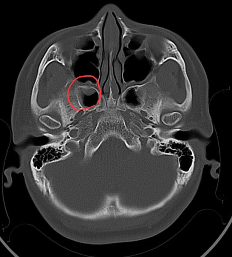 한쪽 부비동에 혹부리처럼 물혹이 있는 것은 알고 있었는데 빨간 동그라미 친 부분의 흰색(or덩어리)는 무엇인지 알 수 있을까요?! 처음 보아서 궁금해서요.
