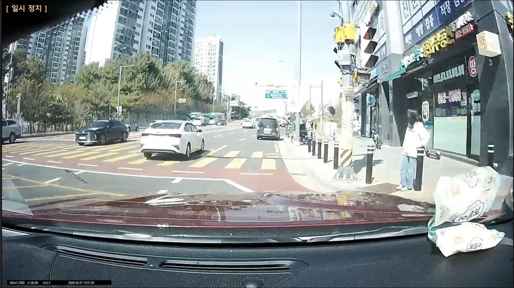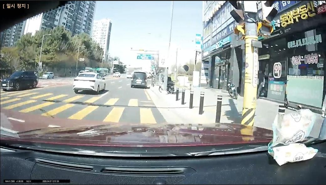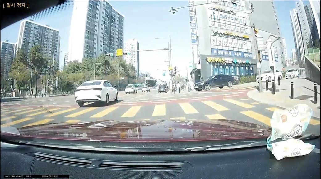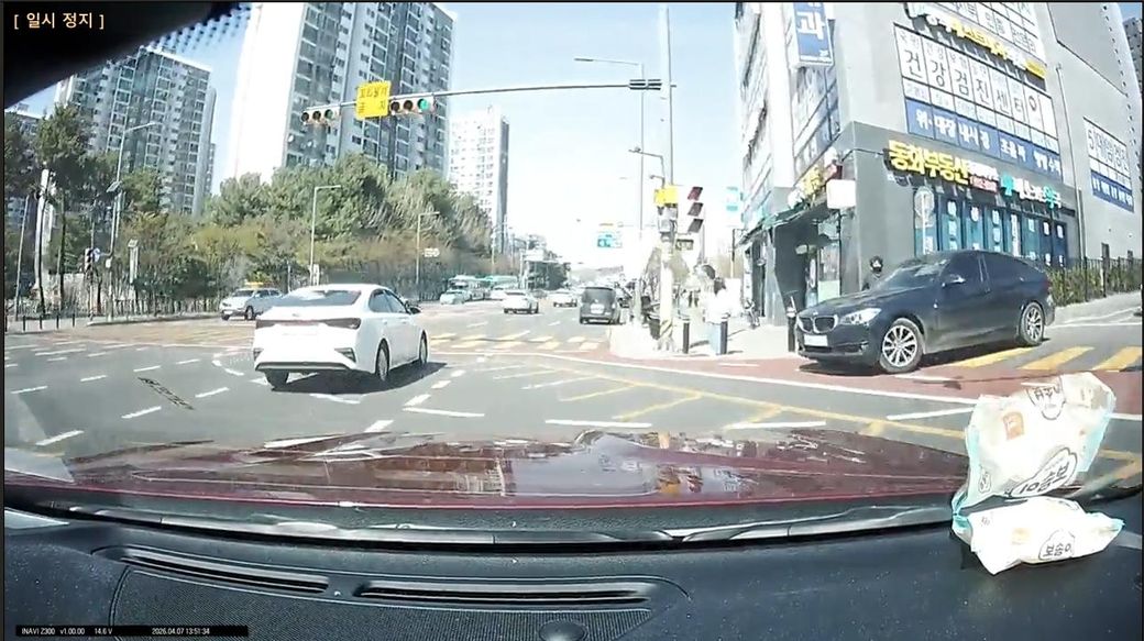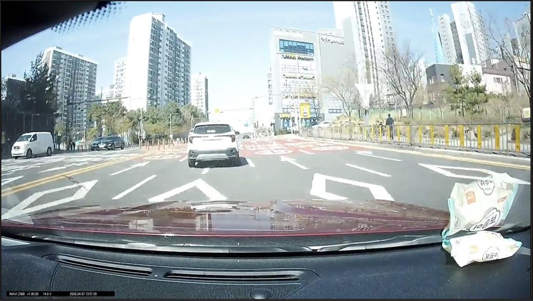 어린이 보호구역이어서 저는 서행(30~40) 중이었고 교차로를 다 지나가기 직전에 우회전 하던 차량이