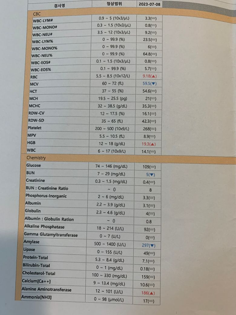 병원에선 별 문제 없다고 하는데 견주입장에선 수치가 정상 범위를 벗어나있어 너무 걱정이 됩니다 ㅠㅠ