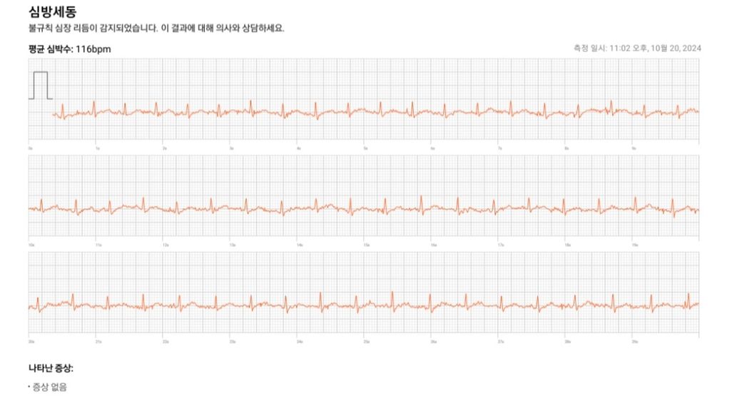 몸이 찌뿌둥해서 1분 동안 춤 추다가 심전도 찍었는데 심방세동이 떴어요...