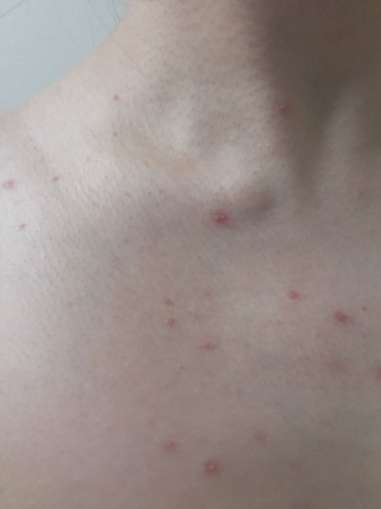 3~4일 전부터 가슴에 여드름 같은 것이 생겼어요.