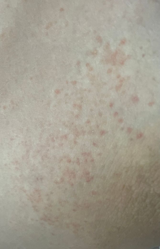 그 부위로 넓게 오돌토돌 붉게 발진이 생겼는데 조금 가려워요.