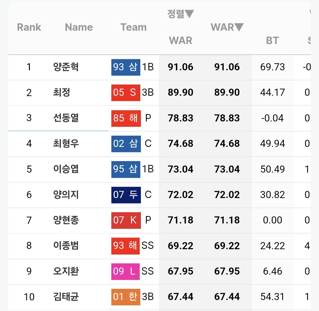 프로야구에서 war은 대체선수 기여도라고해서 선수를 판단하는 척도인데요