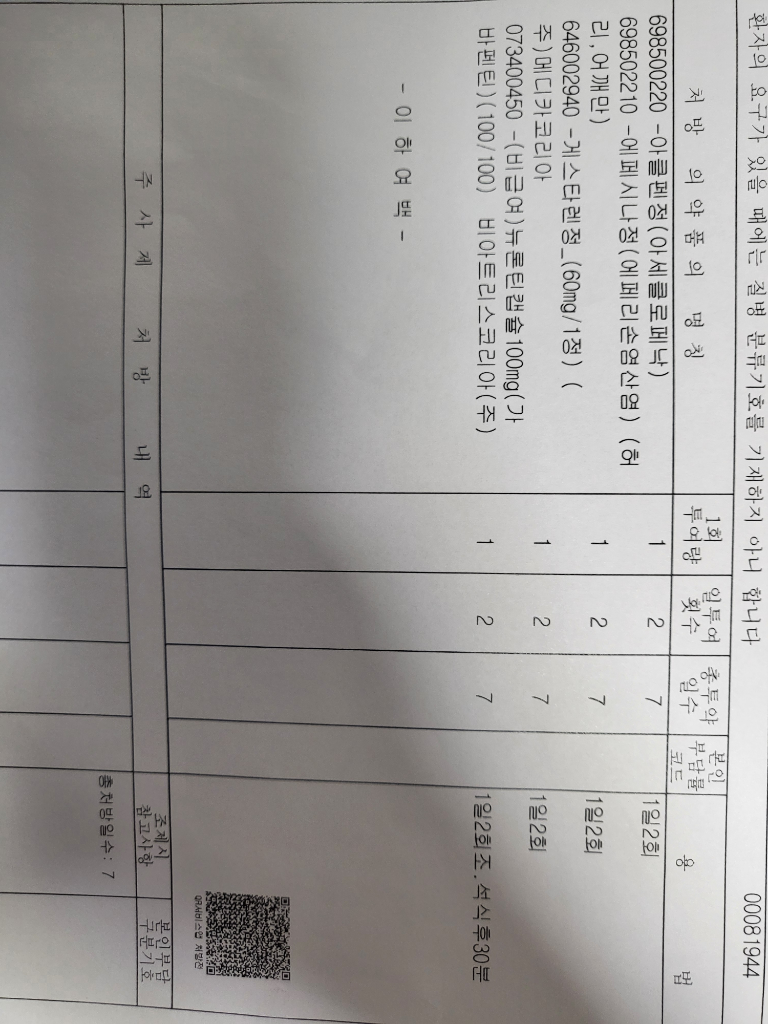 처방받은 정형외과 약을 지금시점에 복용을 하셔도 되며 위장장애 예방을 위해 식후 복용을 권장드립니다.
